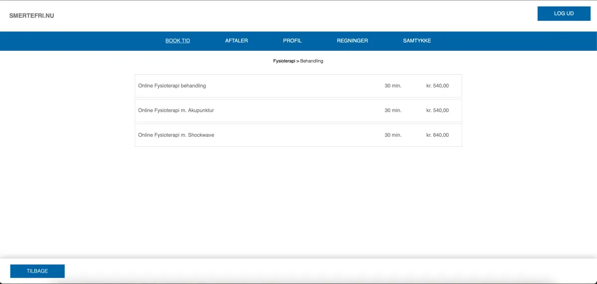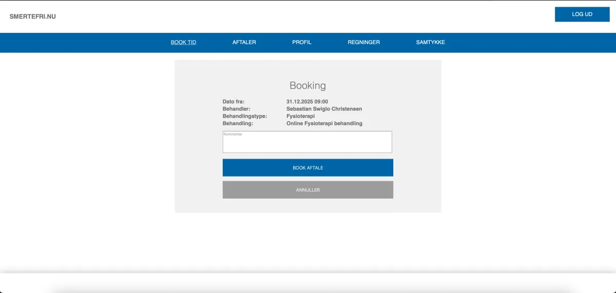 Til aller sidst kommer du til denne side hvor du kan se oversigt over dine tider og har mulighed for at aflyse dine tider.